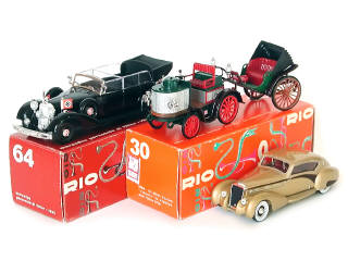 miniatures reproduisant les modèles : MERCEDES, DE DION BOUTON & DELAGE - on y retrouve les marques : RIO & IXO - un véhicule sans boîte - un dessus de boîte fendu - avec une notice