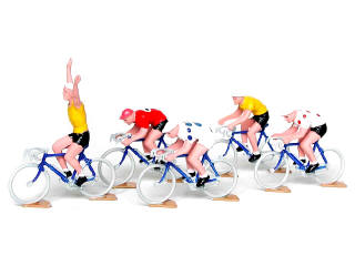 comprend 4 rouleurs tête baissée & un vainqueur - 2 maillots jaunes & un maillot du meilleur grimpeur - vélos en métal & coureurs en plastique