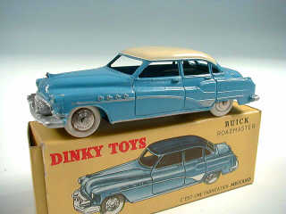 DINKY TOYS (FRANCE) 24V BUICK ROADMASTER (version avec intérieur de toit quadrillé & jantes chromées) bleu, toit crème