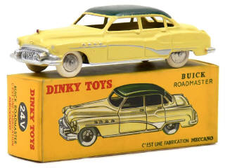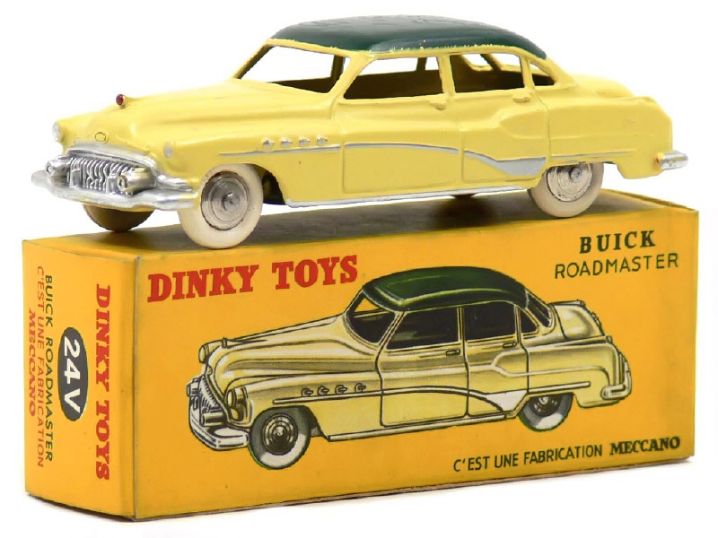 DINKY TOYS (FRANCE) 24V BUICK ROADMASTER (version avec intérieur de toit quadrillé & jantes chromées) jaune paille, toit vert