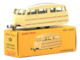 DINKY TOYS (FRANCE) 811 Caravane (version avec toit lisse) crème, filets rouges, toit blanc