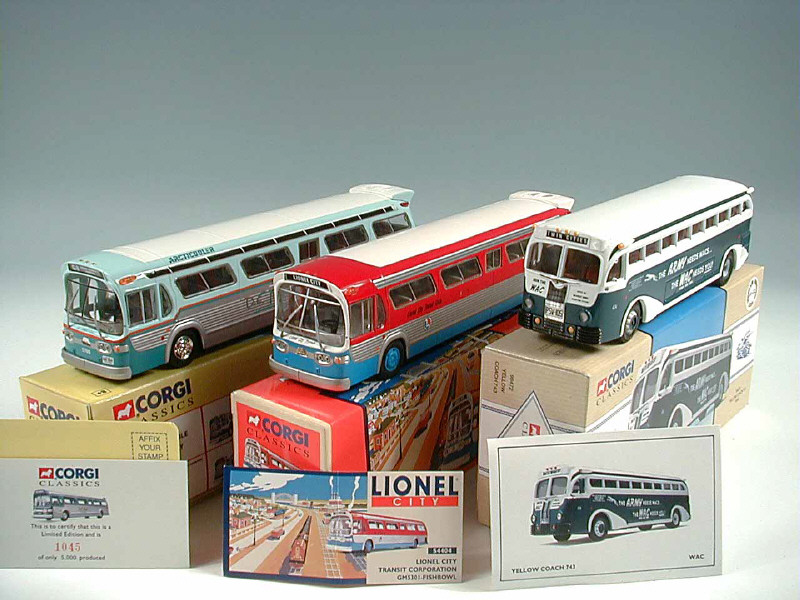 CORGI TOYS (GB) 54404 GM 5301 Autobus FISHBOWL 'LIONEL CITY' rouge, gris métal & bleu