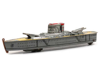 MARX TOYS (USA) U.S.S. WASHINGTON Navire de guerre américain gris clair, jaune pâle & rouge
