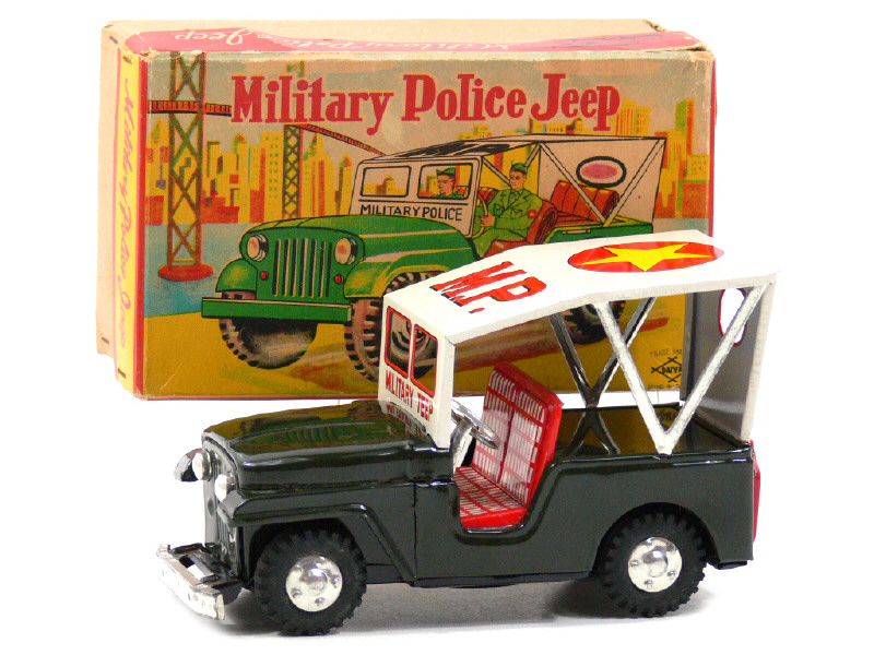 DAIYA (JAPON) MILITARY POLICE JEEP en tôle lithographiée kaki, blanc & rouge