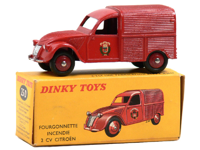 DINKY TOYS (FRANCE) 25D CITROËN 2CV Fourgonnette de pompiers rouge, jantes convexes bordeaux