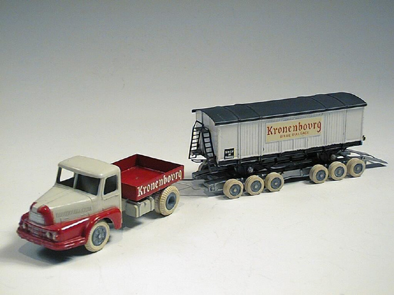 JRD (FRANCE) 123 UNIC avec remorque rail-route 'KRONENBOURG' blanc cassé & rouge