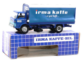 TEKNO (DANEMARK) FORD D 800 Plateau brasseur bâché 'IRMA KAFFE' bleu foncé & blanc