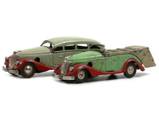 longueur 14,5 cm - moteur à clef (fonctionne) - carrosserie démontable permettant d'obtenir au choix un autocar découvrable ou un cabriolet - jantes & pneus non d'origine - partie démontable en état 'E'