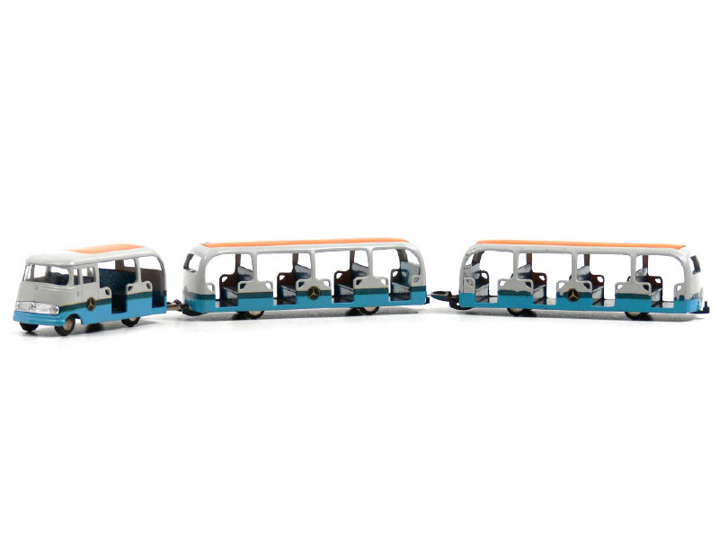 TEKNO (DANEMARK) 851 MERCEDES Minibus articulé à chariots bleu ciel, gris & orange