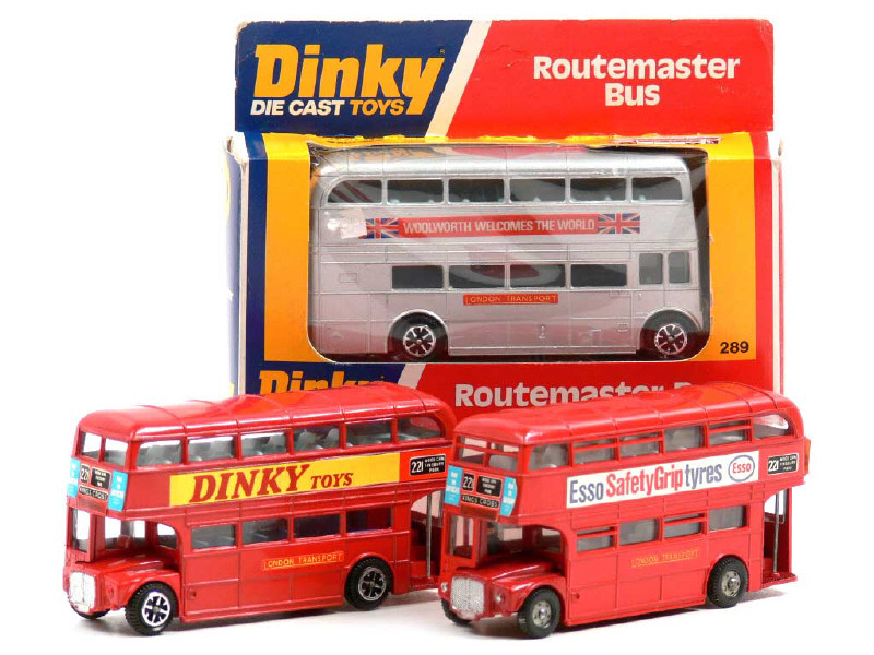 DINKY TOYS (GB) 289 ROUTEMASTER Bus 'WOOLWORTH WELCOMES THE WORLD' argent