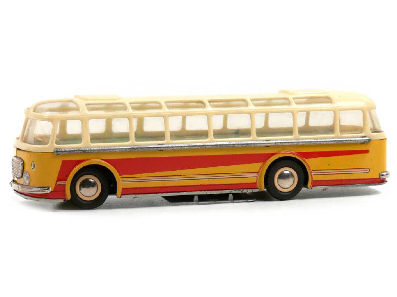 ITES (TCHEKOSLOVAQUIE) 3752 Autocar en tôle lithographiée & plastique jaune, rouge & crème