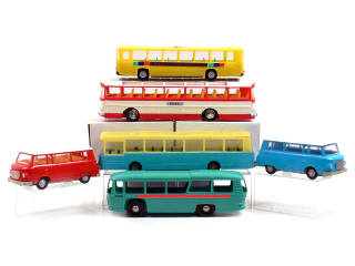 états de 'A-' à 'C' - réalisation en plastique - miniatures reproduisant notamment les modèles : BERLIET, KAROSA & BARKAS - 5 modèles motorisés - on y retrouve notamment les marques : ITES, ANKER & ROVEX - avec manques
