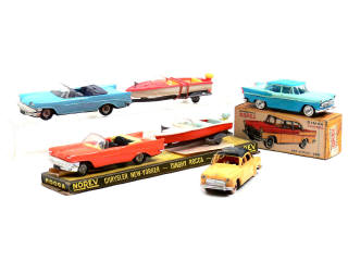 NOREV (FRANCE) 92 CHRYSLER NEW YORKER avec DINGHY ROCCA sur remorque bleu turquoise