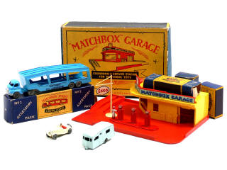 MATCHBOX (GB) Ensemble d'un camion, une voiture, une caravane, un poste de ravitaillement & un garage