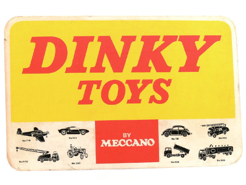 MECCANO Panneau publicitaire de détaillant en carton 'DINKY TOYS BY MECCANO' jaune, rouge & blanc
