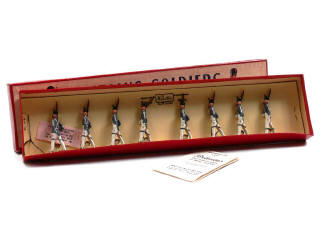 PRODUCTION ORIGINALE - contient 8 soldats avec fusil sur l'épaule - avec ficelle de maintien d'origine, étiquette de contrôle & notice