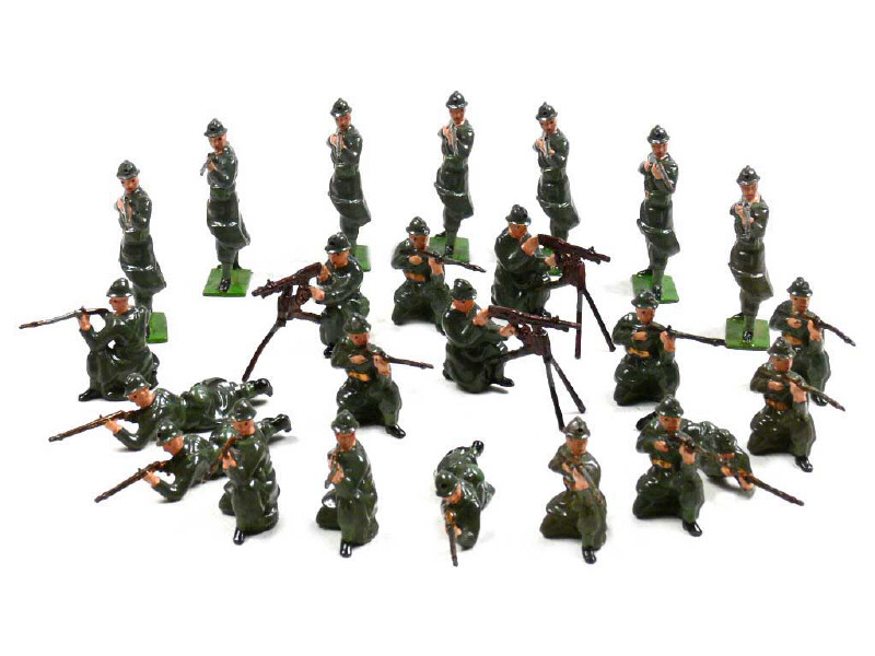 états de 'B' à 'C'- PRODUCTION ORIGINALE - comprend : 7 debout, 4 tirant couchés, 3 mitrailleurs (dont un avec trépied incomplet) & 10 tirant à genoux (dont un en état 'C')