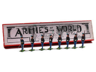 PRODUCTION ORIGINALE - comprend : 7 soldats avec fusil sur l'épaule & un officier avec sabre - coffret non conforme référence 1856