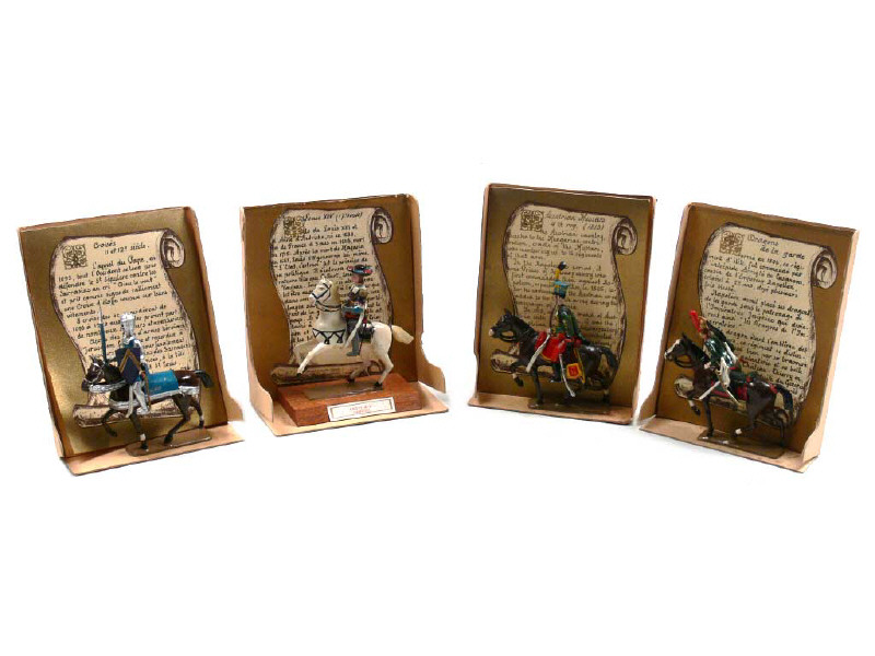 comprend : un dragon de la garde, un croisé, un hussard autrichien & Louis XIV - avec historique de la figurine