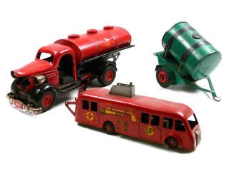 longueur 30 cm - moteur à clef (fonctionne) - manque échelle & dévidoir - sirène 2 tons (à revoir) - une roue cassée - montants supérieurs d'échelle légèrement déformés