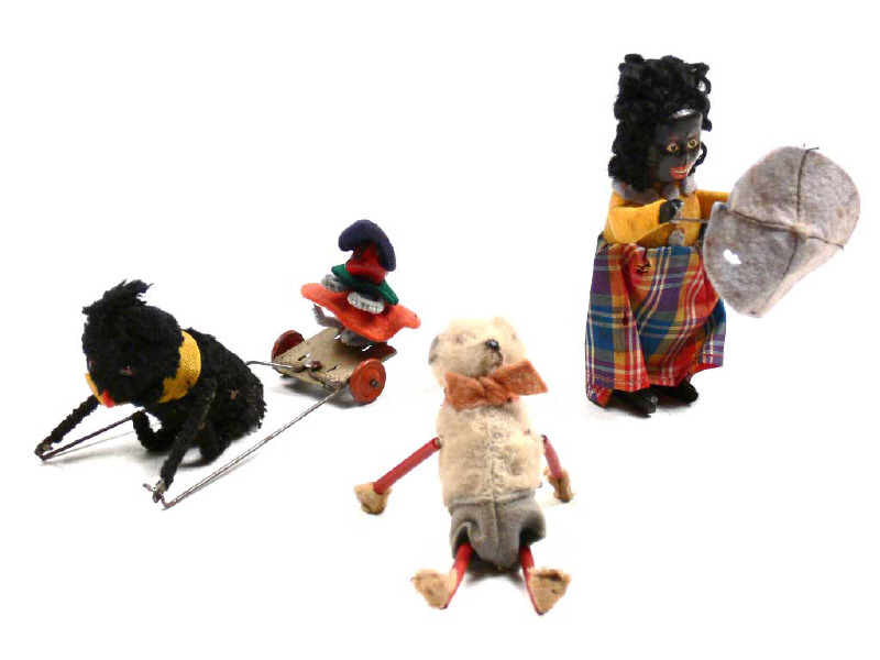 comprend : une jeune femme de couleur à l'ombrelle, une souris effectuant des galipettes, un ours avec souris sur charrette - 2 moteurs à clef fonctionnent & un autre à revoir