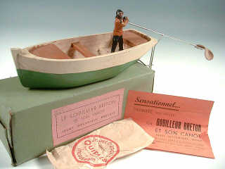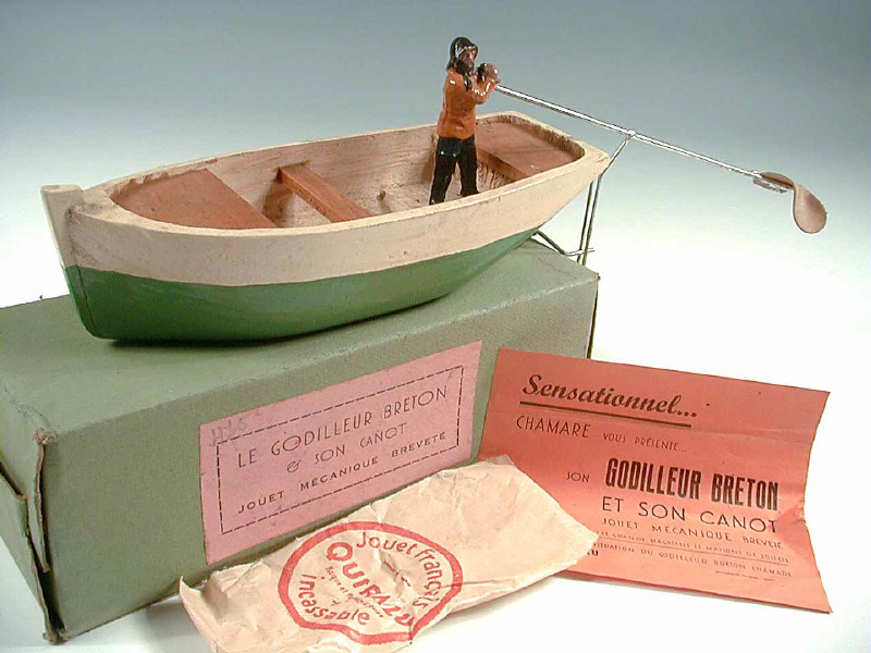CHAMARE (FRANCE) Le godilleur breton & son canot crème & vert
