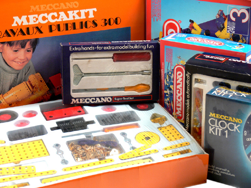 fabrication des années 1970 à 1990 - comprend les numéros : 1 (avec manuel d'instructions), 2, 3 (un exemplaires avec manuel d'instructions & un autre avec boîte en état 'd'), TRAVAUX PUBLICS 300 (sous film plastique jamais ouvert avec manuel d'instructions) & CLOCK KIT 1 (sous film plastique jamais ouvert) - on y joint une boîte SUPER TOOL SET & une boîte ELECTRONIC CONTROL SET