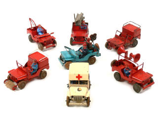 états de 'B' à 'E' - comprend : 2 arroseuses-balayeuses, une dépanneuse, une échelle de pompiers, une ambulance, une haut-parleur & une de cinéma avec cameraman - un modèle avec manques - quelques traces d'oxydation