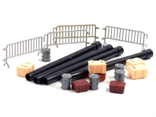comprend : 4 barrières, 4 pipe-lines, 4 caisses, 3 valises & 5 fûts