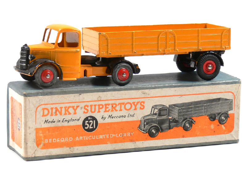 DINKY TOYS (GB) 521 BEDFORD Semi-remorque plateau à ridelles jaune d'or, ailes noires & jantes rouges