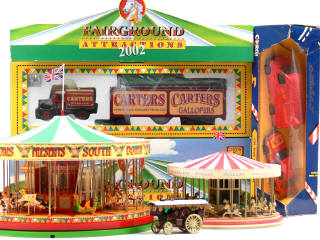 CORGI TOYS (GB) Ensemble de 3 véhicules, 2 remorques, une locomotrice & 2 manèges de chevaux de bois