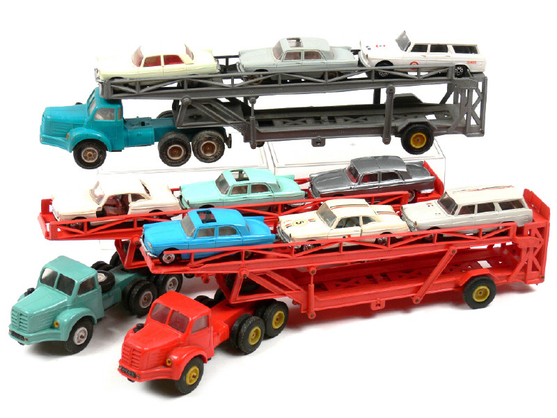 NOREV (FRANCE) Ensemble de 3 camions BERLIET transport d'autos & 9 PEUGEOT 404