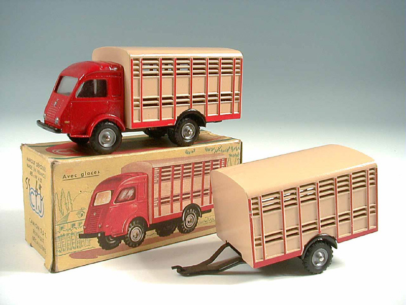 C.I.J. (FRANCE) 3/28 Remorque-bétaillère beige & rouge