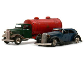 longueur 15 cm - moteur à clef (fonctionne) - traces d'oxydations sur les parties nickelées - 2 pneus affaissés & un autre non d'origine