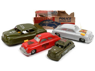 longueur 22,5 cm - moteur à friction (fonctionne) - avec système de pierre à briquet - carrosserie légèrement déformée - plancher oxydé - un petit défaut de moulage sur une des portières