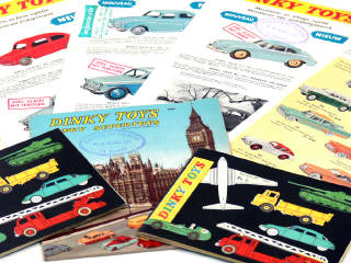 DINKY TOYS (GB) Ensemble de 3 catalogues, 4 affichettes de nouveautés & un dépliant