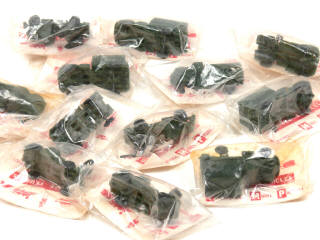 petites échelles - réalisation en plastique - comprend : 4 camions bâchés, 2 transports de troupe, 2 plateaux avec canons, 2 plateaux avec projecteurs antiaériens & 2 plateaux avec radars - véhicules sous sachets individuels jamais ouverts