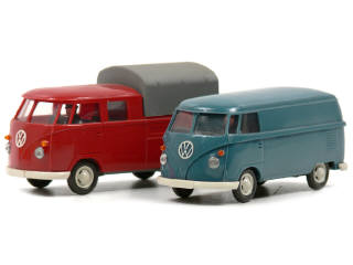 WIKING (ALLEMAGNE) VOLKSWAGEN T1 Pick-up bâché à cabine double bordeaux, bâche grise