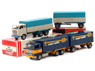 TEKNO (DANEMARK) 425 VOLVO FB89 Bâché 'TRANSPORT SPEDITION' bleu marine & jaune