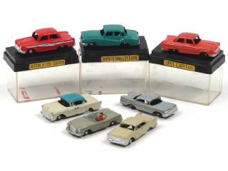 états de 'A' à 'C' - échelle 'HO' - miniatures reproduisant les modèles : AUSTIN, DAIMLER, OPEL, MERCEDES, BUICK, DODGE & CHEVROLET - 3 voitures avec boîtes-vitrines