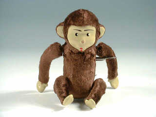 hauteur 15 cm - mécanisme à clef (fonctionne) - en action, le singe effectue des roulades - fabrication en fourrure & composition