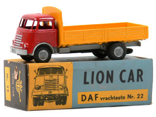 LION-CAR (PAYS-BAS) 22 DAF 1300 Plateau à ridelles basses rouge & jaune