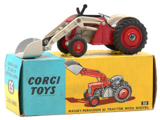 CORGI TOYS (GB) 53 MASSEY FERGUSON 65 Tracteur avec pelle chargeuse rouge & blanc cassé