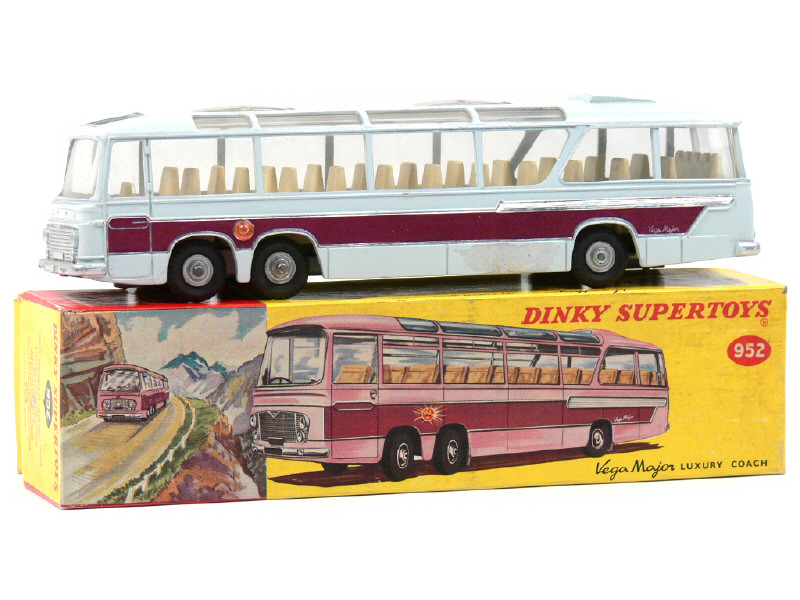 DINKY TOYS (GB) 952 VEGA MAJOR LUXURY COACH gris clair, bandes bordeaux