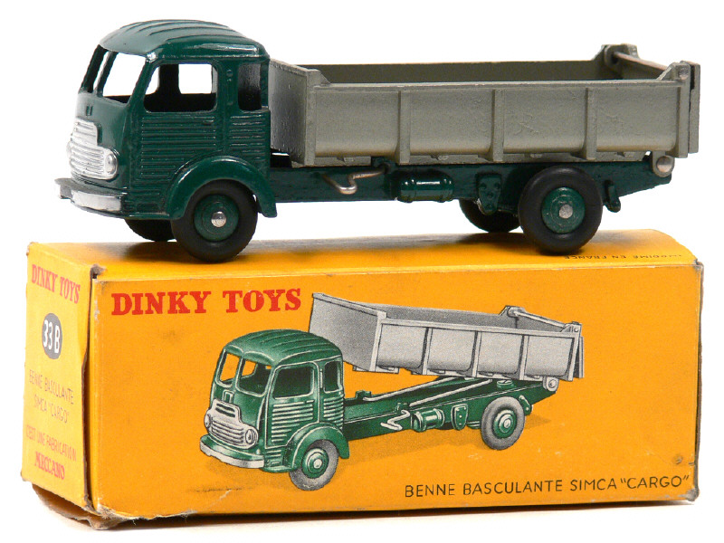 DINKY TOYS (FRANCE) 33B SIMCA CARGO Benne basculante vert foncé, benne gris métal doré (intérieur strié)