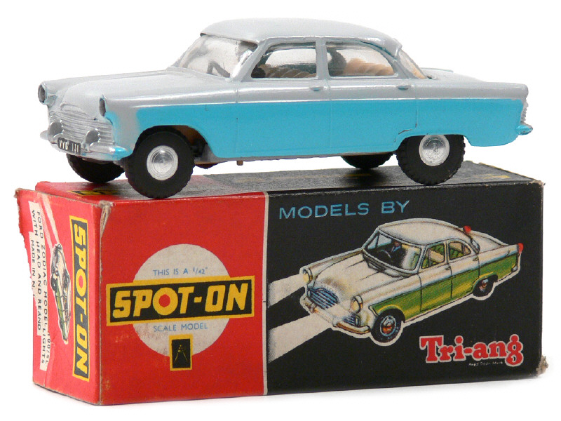 SPOT-ON (GB) 100SL FORD ZODIAC avec phares électriques & conducteur gris clair, flancs bleu ciel, intérieur crème
