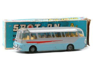 SPOT-ON (GB) 156 MULLINER Autocar de luxe 'TRI-ANG TOURS' argent, bleu ciel, filets rouges