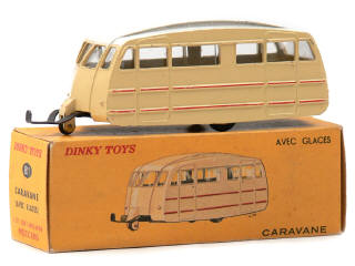 DINKY TOYS (FRANCE) 811 Caravane (version avec toit lisse) crème, filets rouges, toit blanc