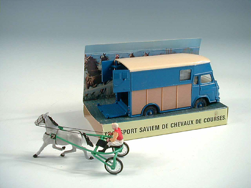 DINKY TOYS (FRANCE) 571 SAVIEM Goélette transport de chevaux bleu, bois, toit blanc
