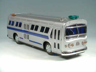 MASUDAYA TOYS Co. (JAPON) GM Autocar en tôle gris métal & bleu
